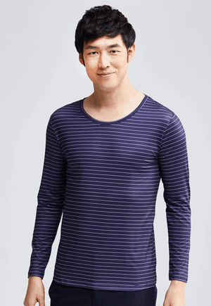MIT 寬條紋溫灸刷毛圓領發熱衣(藍白色 男M-XXL)