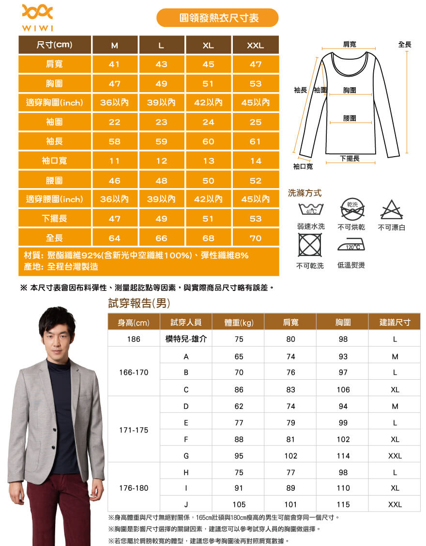 保證100%MIT樂活刷毛圓領發熱衣(純淨白 男M-XXL)
