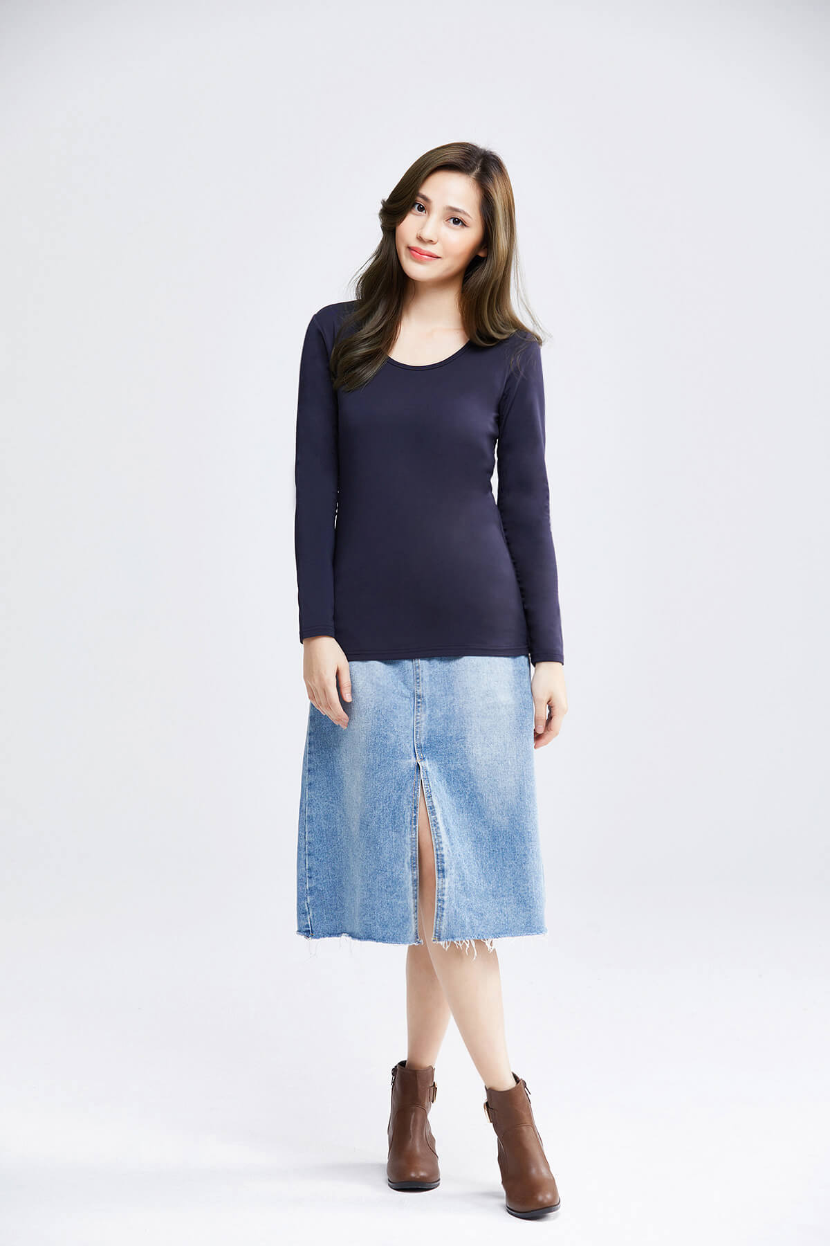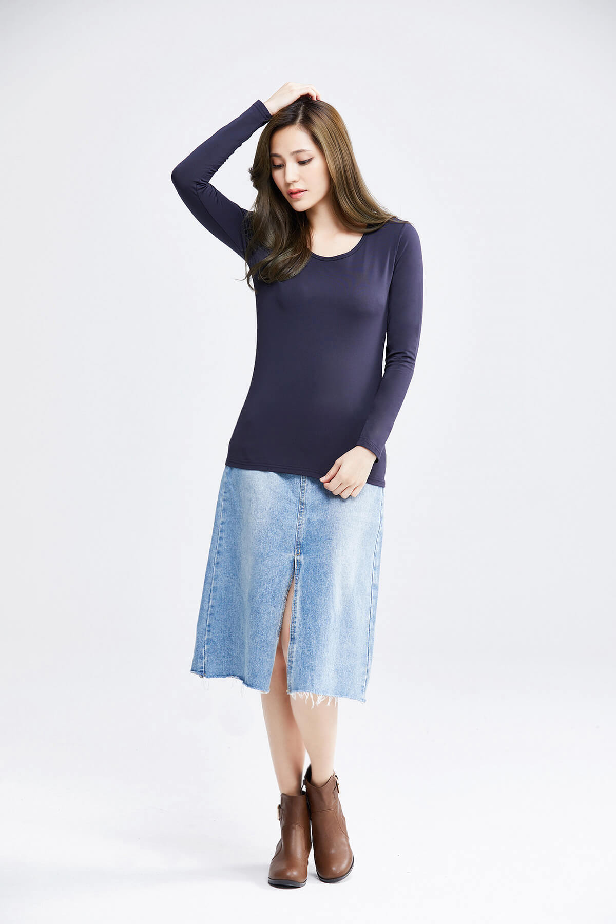 MIT溫灸刷毛圓領發熱衣(湛海藍 女S-2XL)