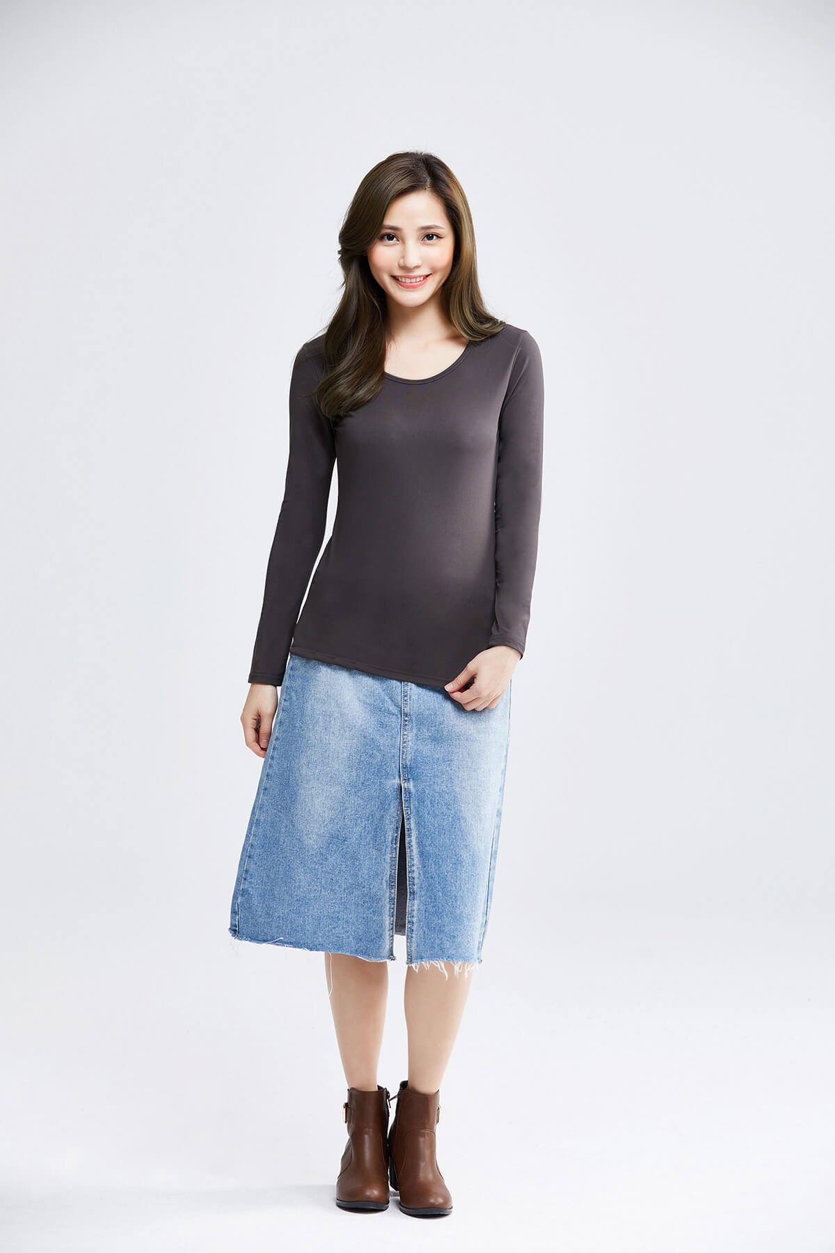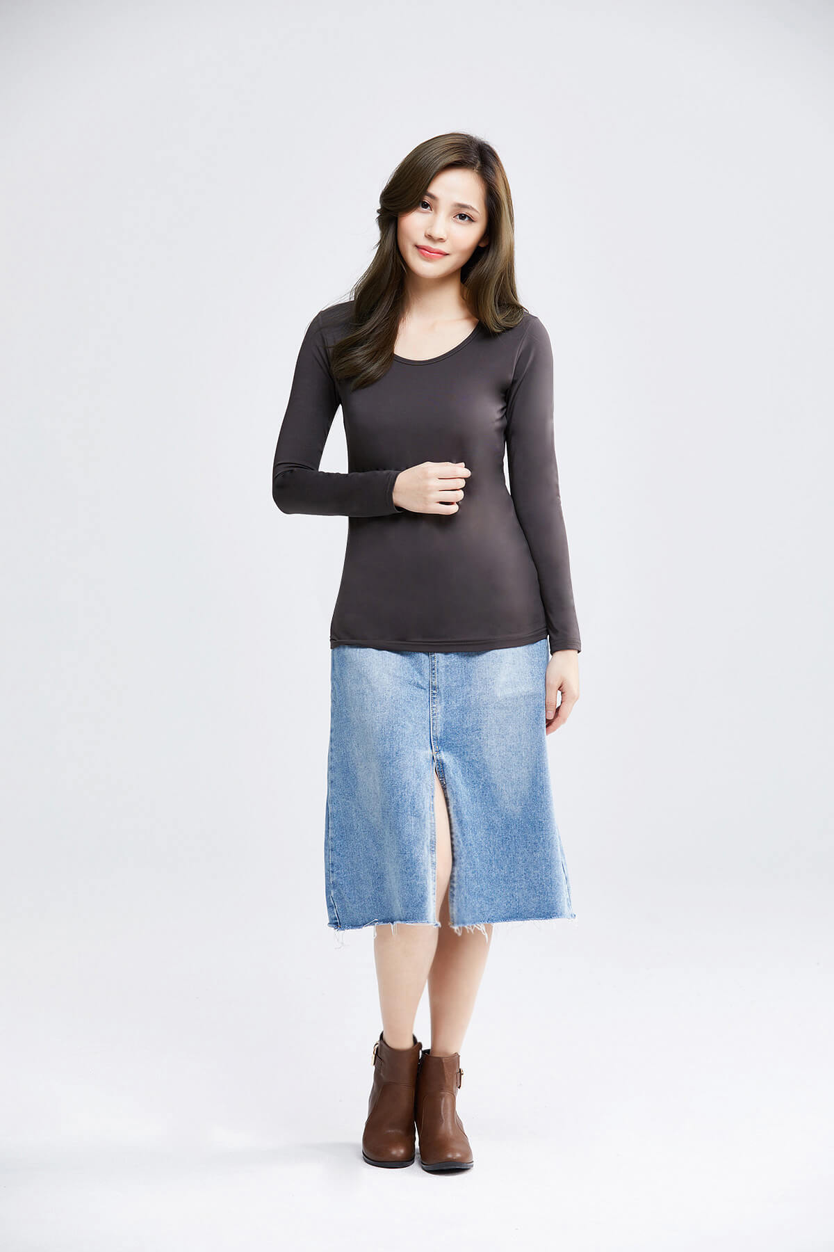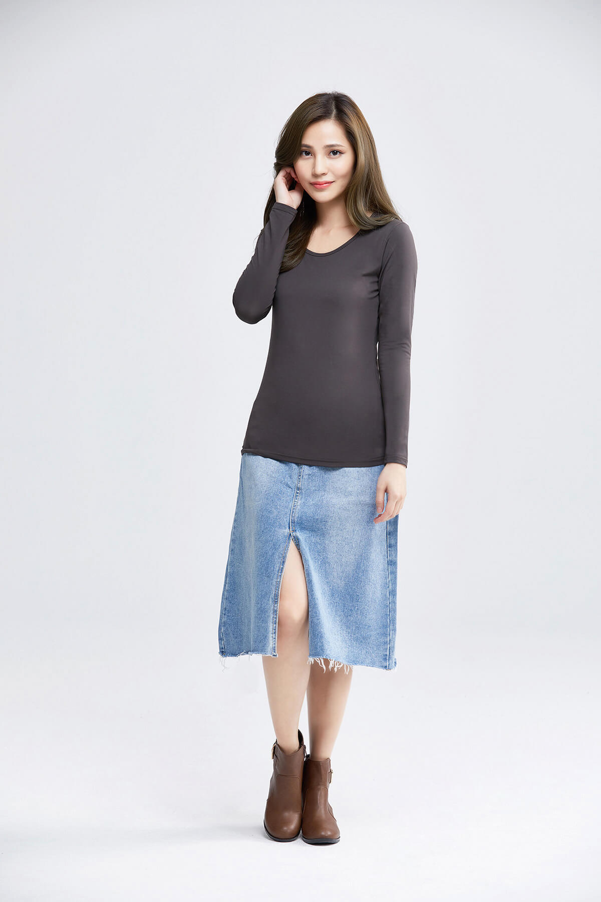 MIT溫灸刷毛圓領發熱衣(銀河灰 女S-2XL)