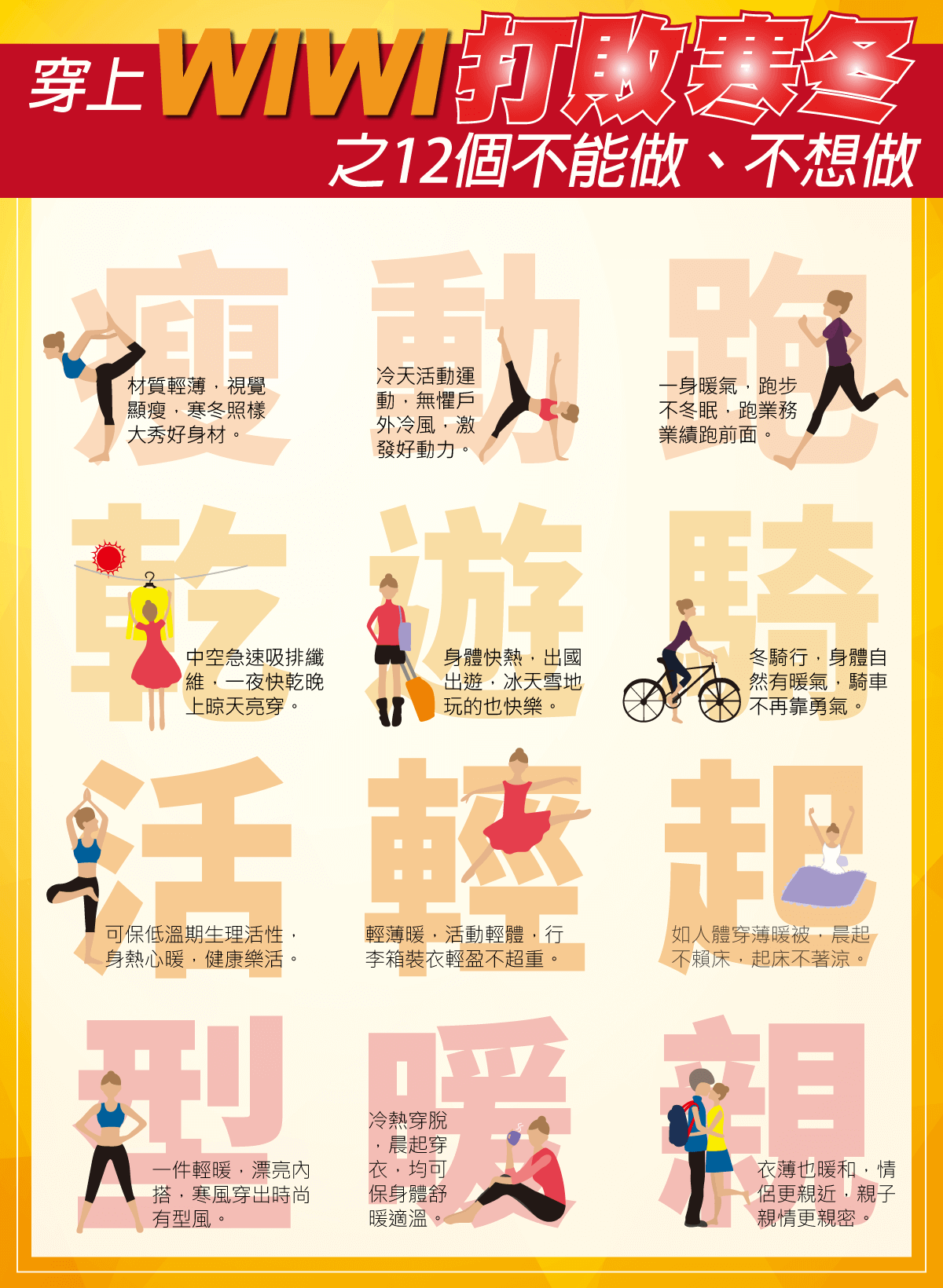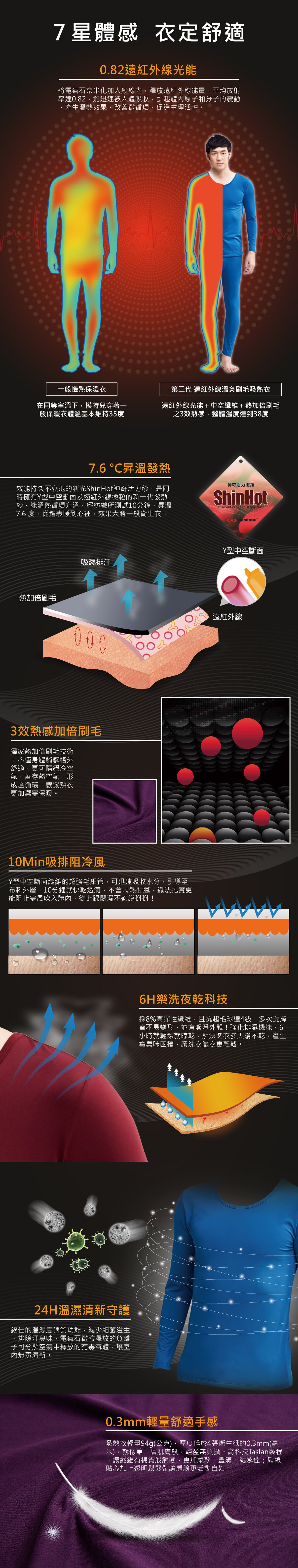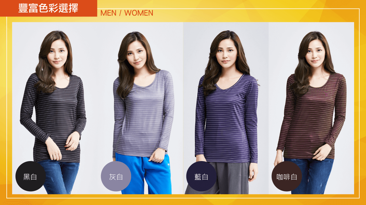 ※ 漾彩系列發熱衣為顧及印花品質,故刷毛爲輕短刷毛,經實驗測試保暖度與素面系列皆同。