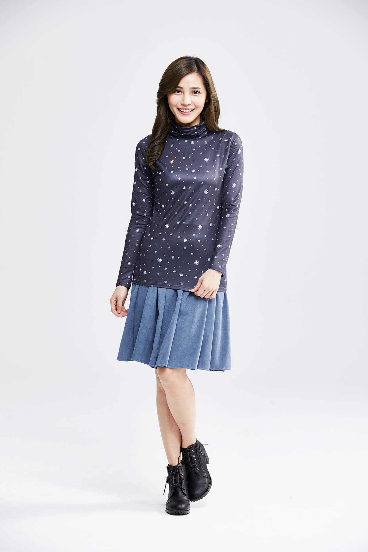 MIT 雪花溫灸刷毛高領發熱衣(灰白色 女S-XL)