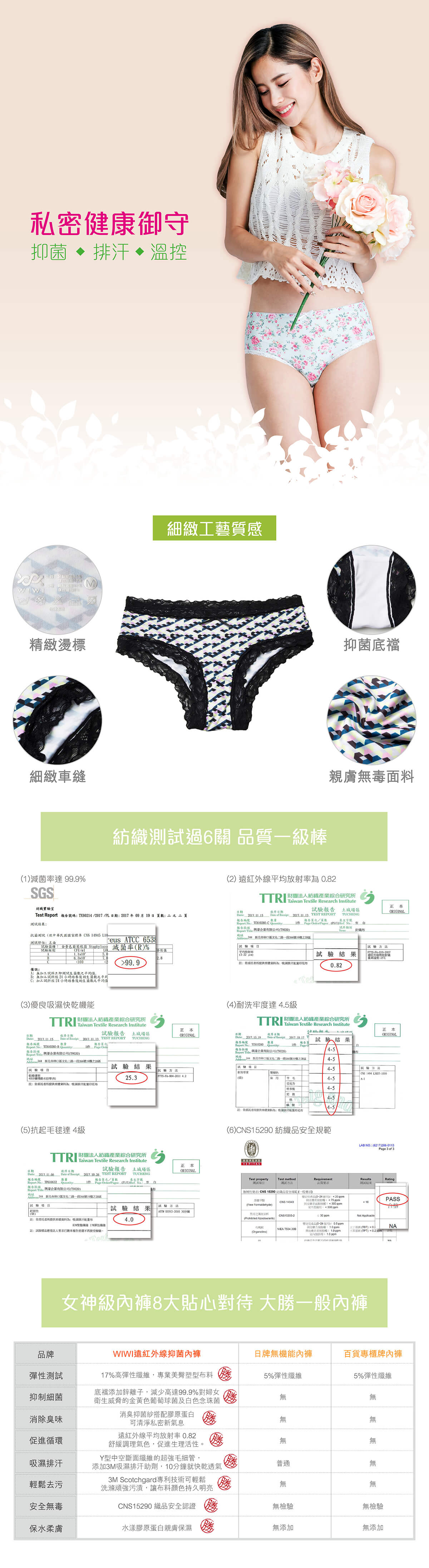 - 抑菌除臭+鋅離子布料 減菌率高達99.9%