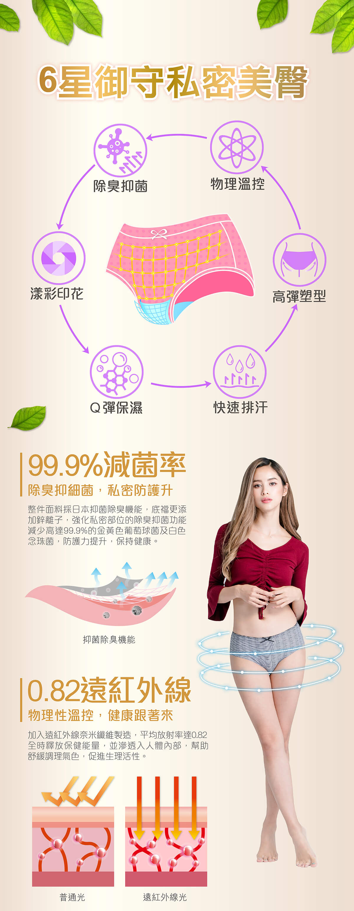 - 抑菌除臭+鋅離子布料 減菌率高達99.9%