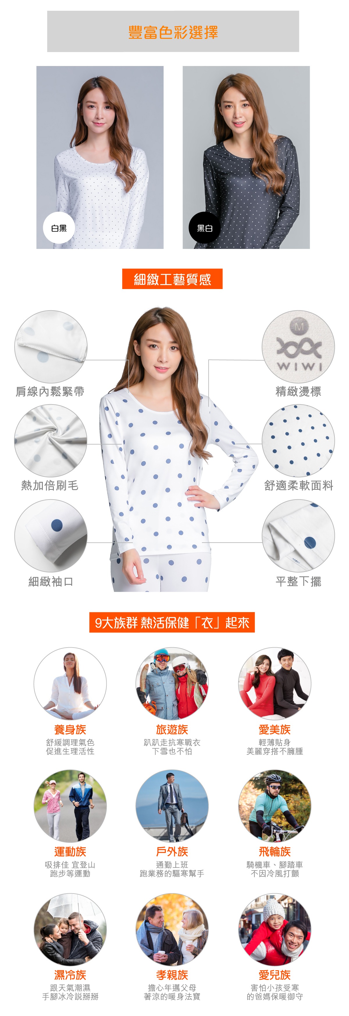水玉點點溫灸刷毛圓領發熱衣(經典黑 女S-2XL)