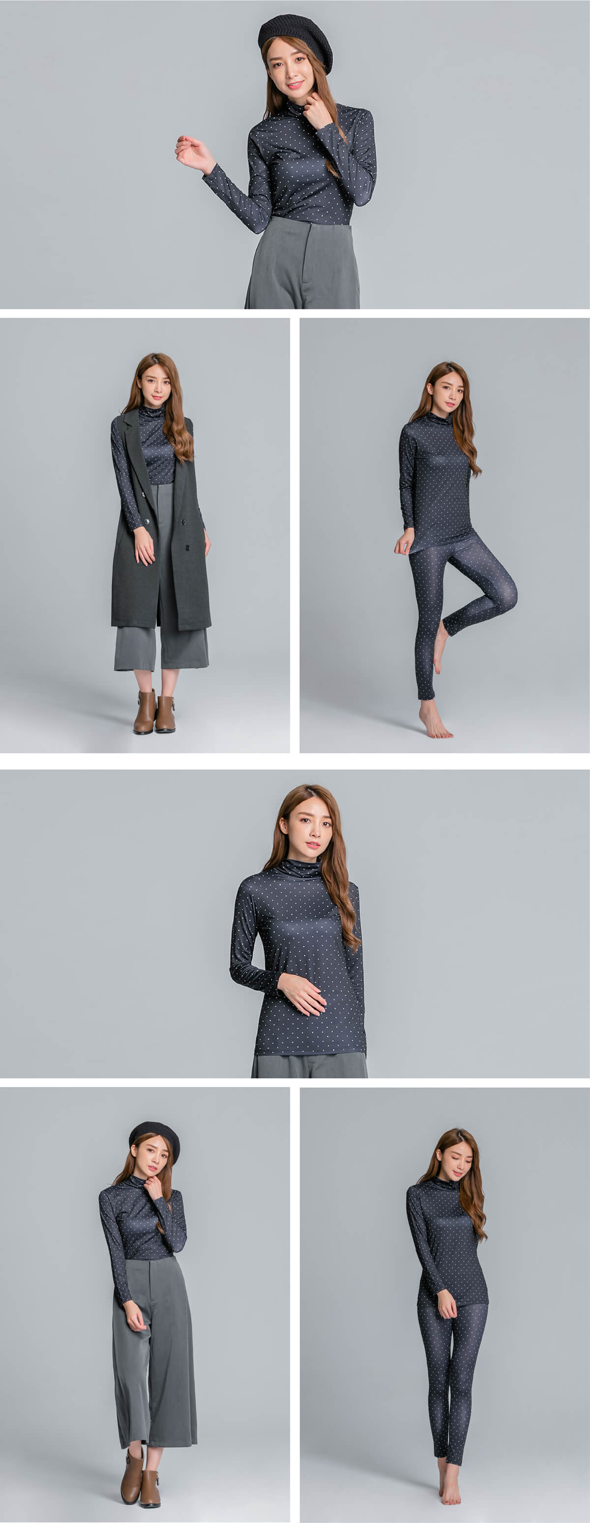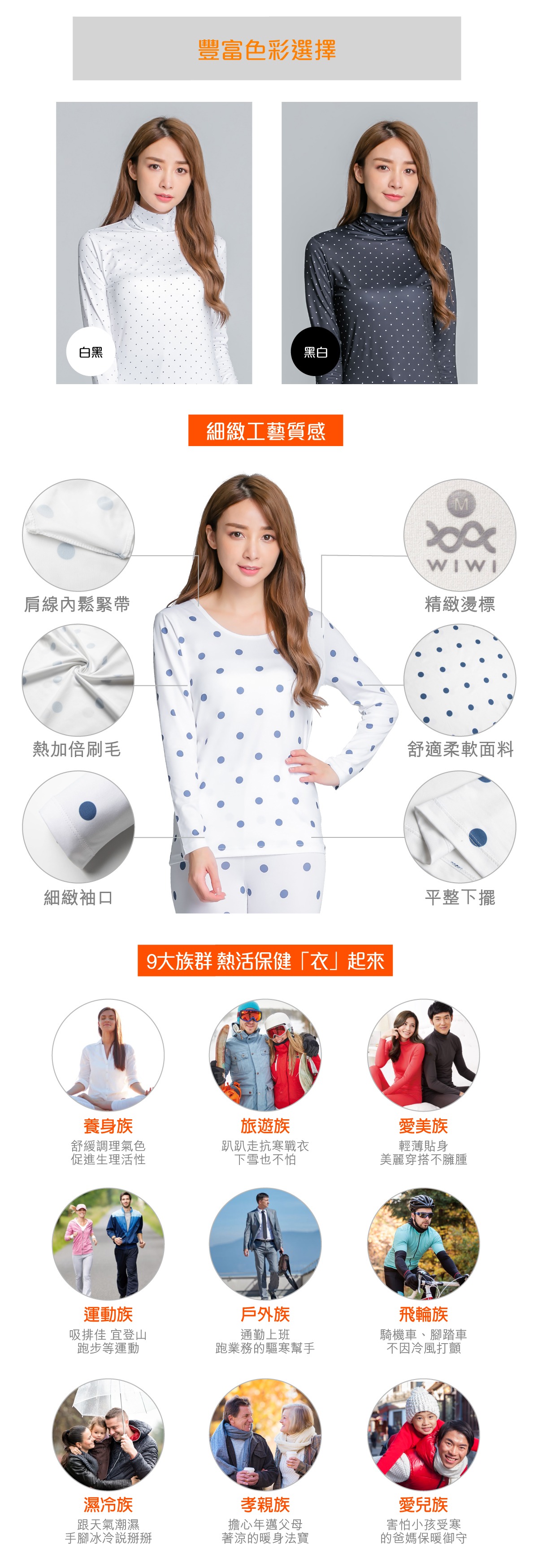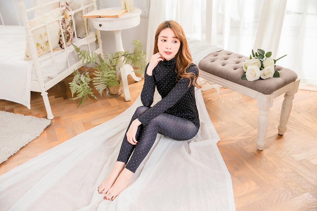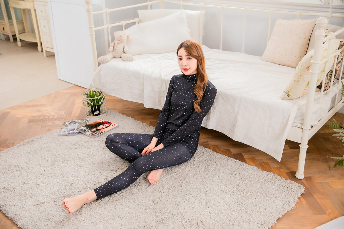 水玉點點溫灸刷毛高領發熱衣(經典黑 女S-2XL)