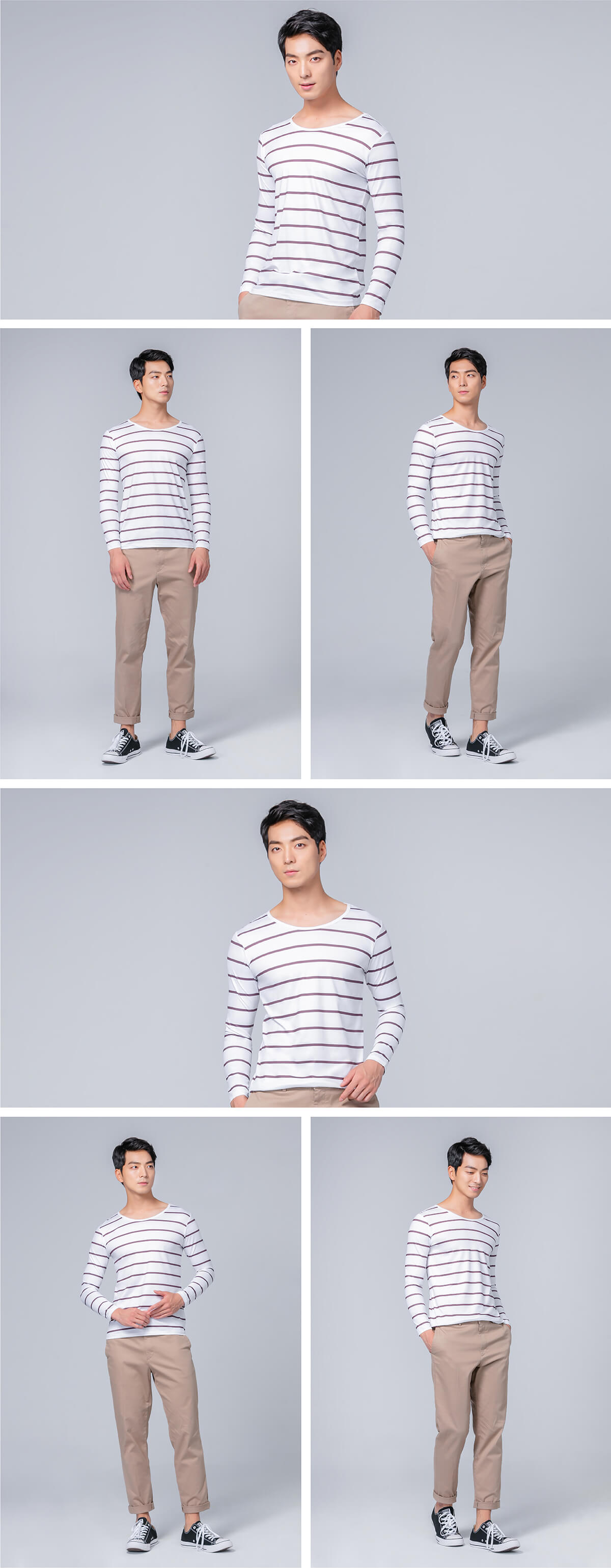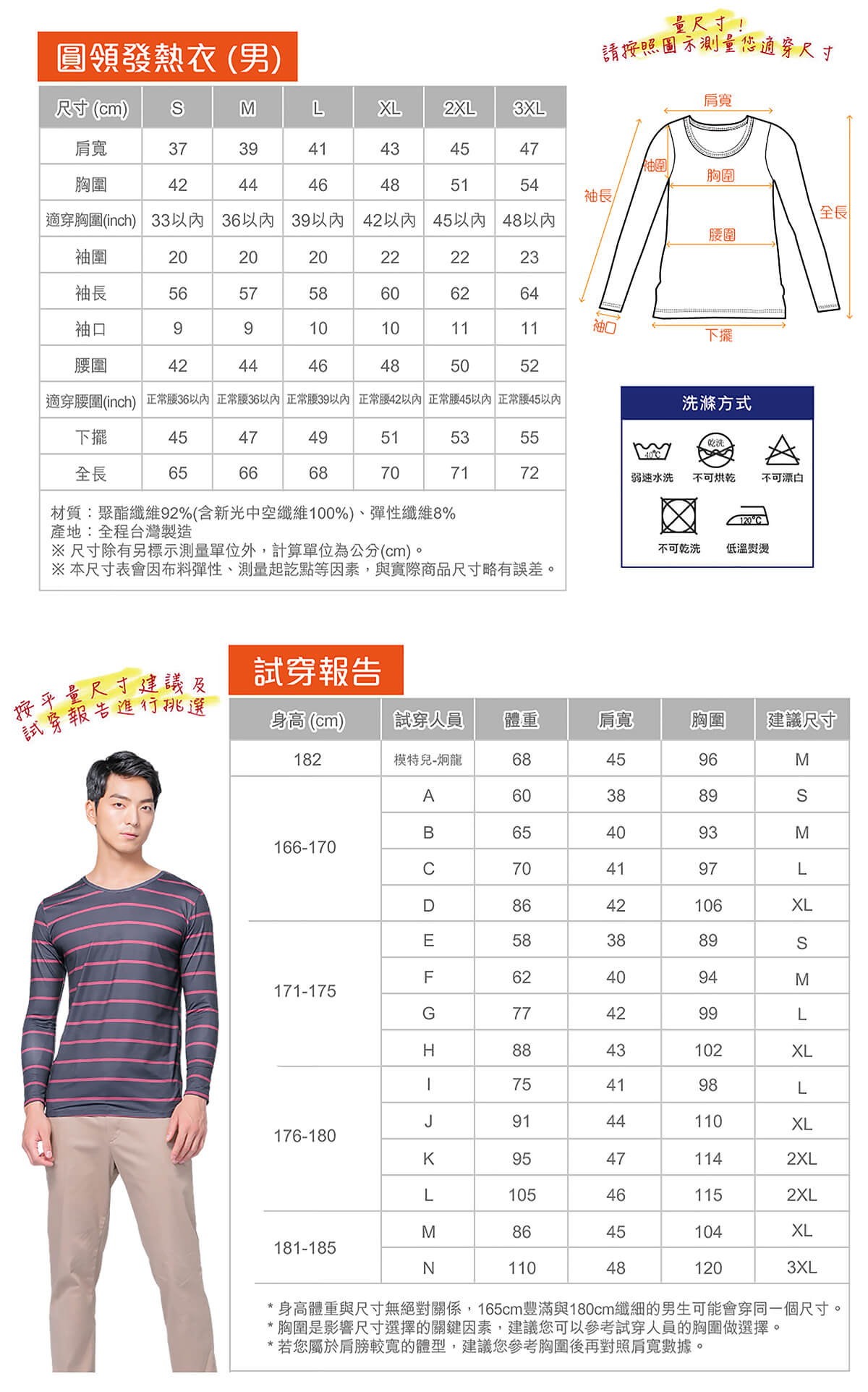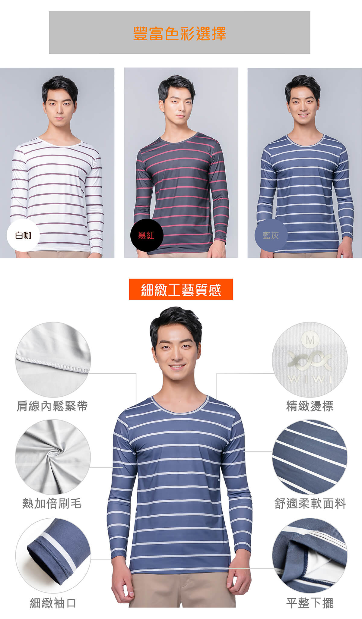 經典條紋溫灸刷毛圓領發熱衣(純淨白 男S-3XL)
