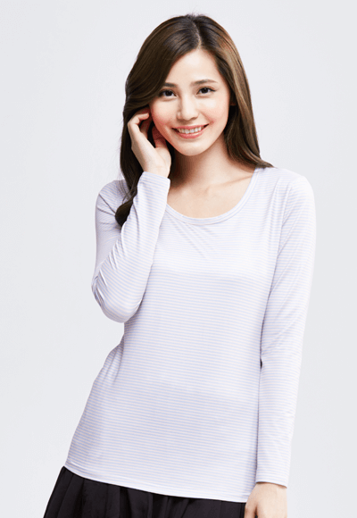 MIT 細條紋溫灸刷毛圓領發熱衣(粉藍色 女S-XL)