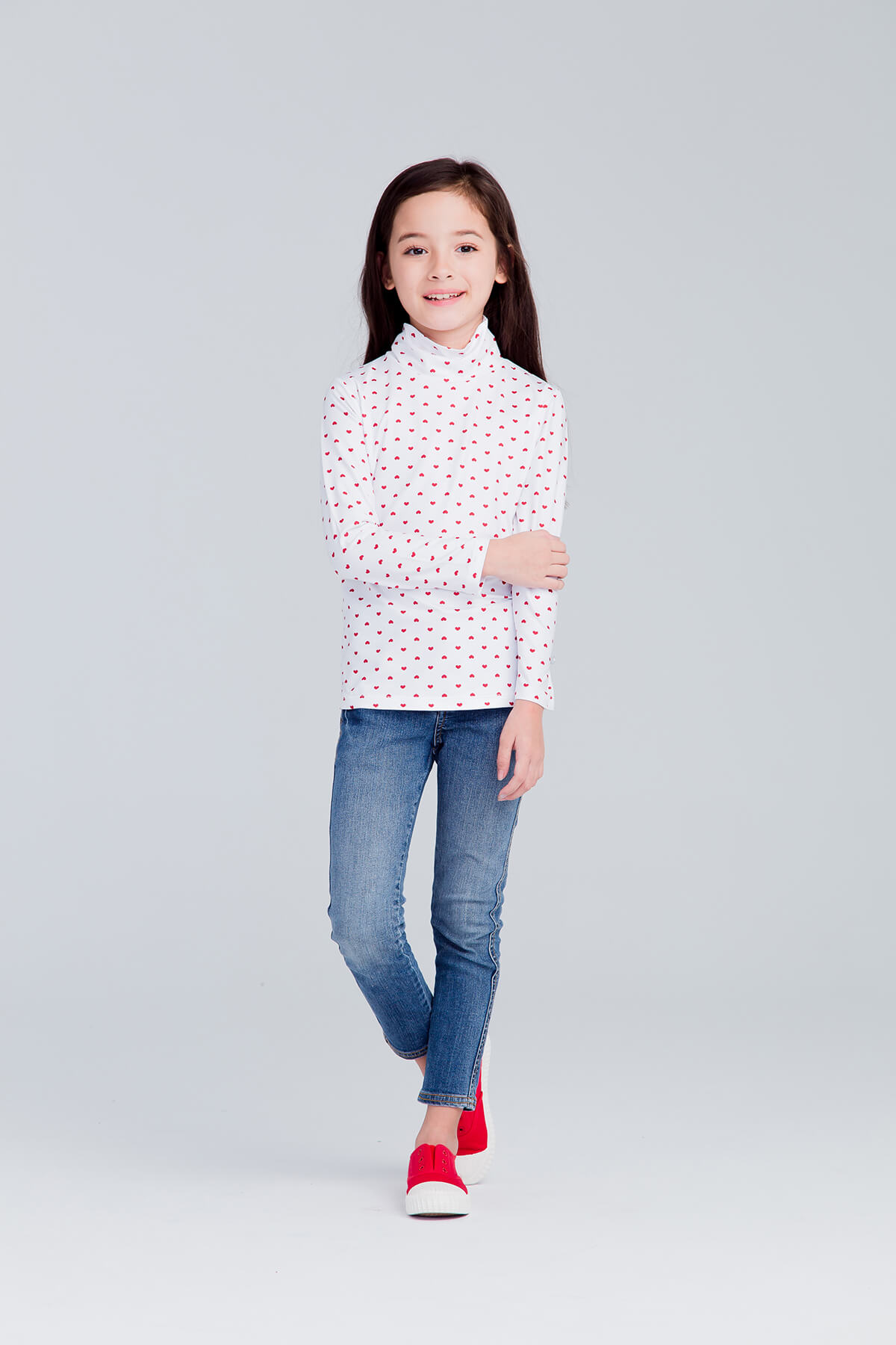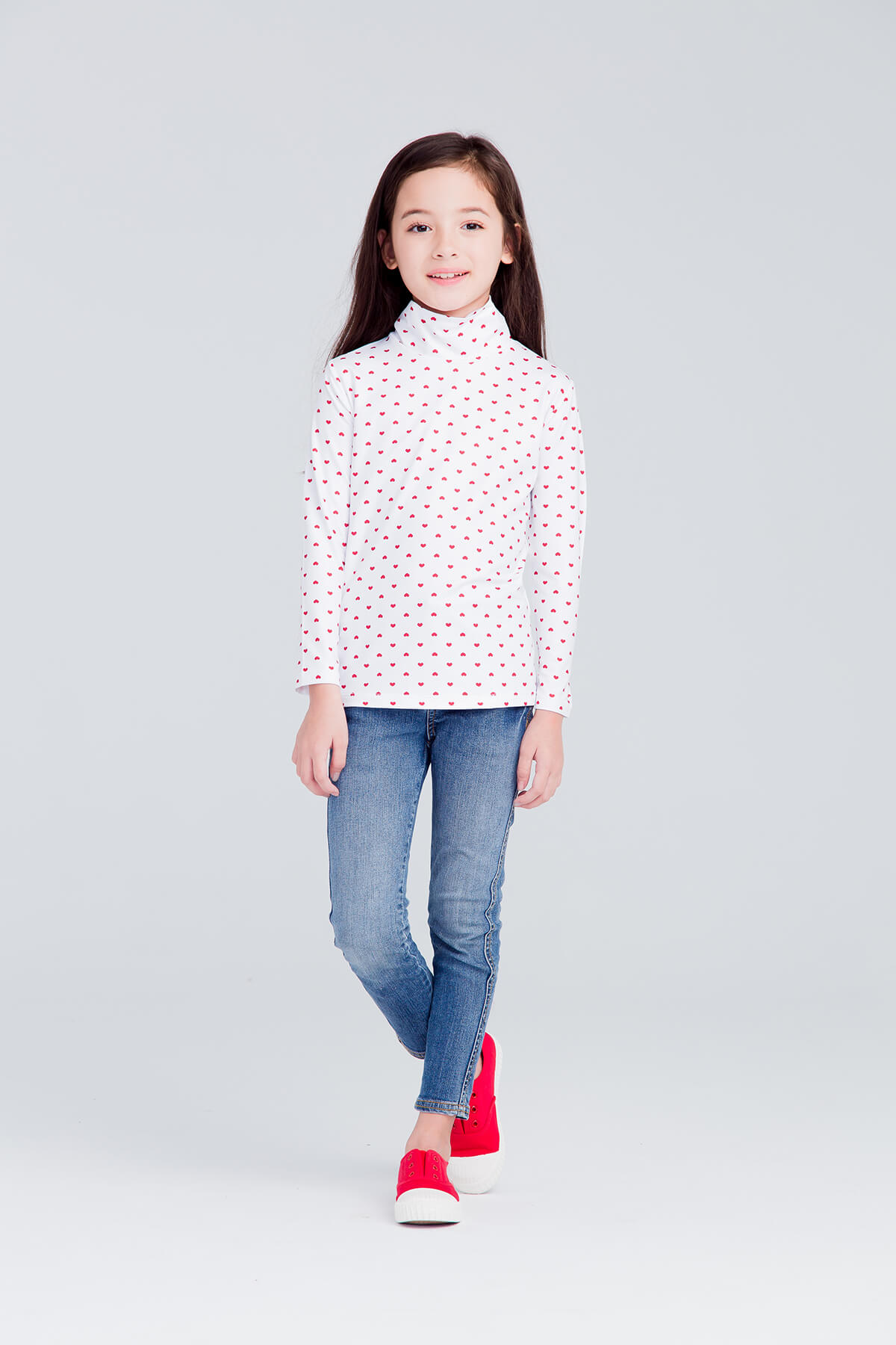MIT 愛心溫灸刷毛高領發熱衣(白紅 童80-150)