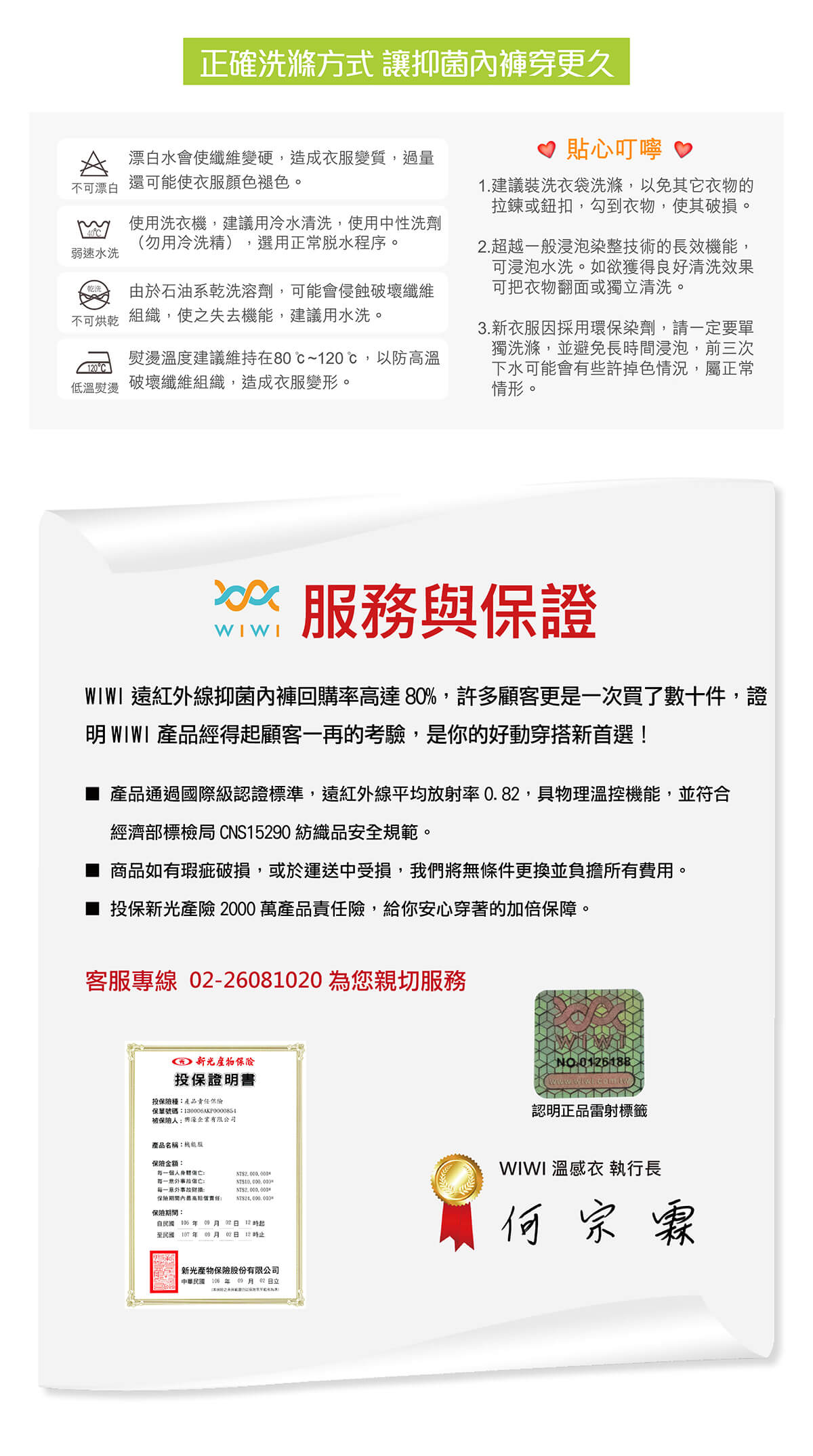 - 抑菌除臭+鋅離子布料 減菌率高達99.9%