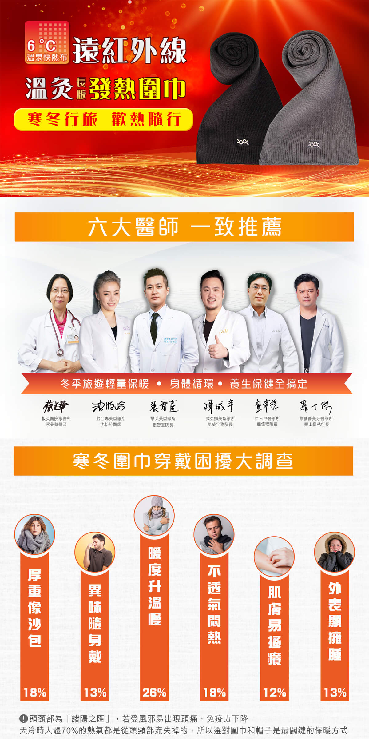 MIT遠紅外線溫灸長版發熱圍巾(經典黑 中性F)